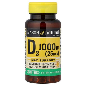 Mason Natural, 維生素 D3,25 微克(1,000 國際單位),120 粒軟膠囊