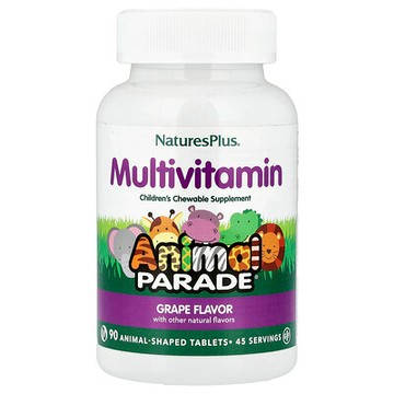 NaturesPlus, Animal Parade®,兒童咀嚼多維生素補劑,葡萄味,90 片動物狀片劑