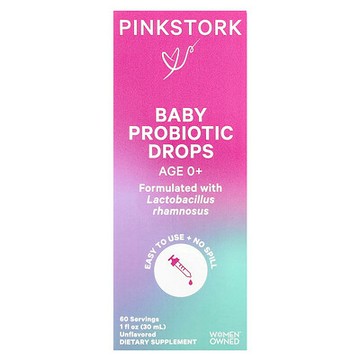 Pink Stork, 嬰兒益生菌滴劑,0 歲以上,原味,1 液量盎司(30 毫升)