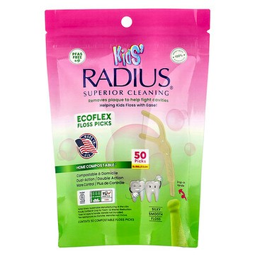 RADIUS, 兒童,EcoFlex 牙線棒,泡泡糖,50 根可降解牙線棒