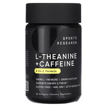 Sports Research, L-茶氨酸和咖啡萃取,2 合 1 配方,60 粒軟膠囊