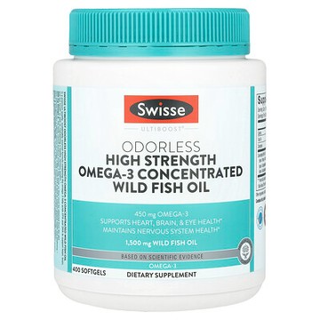 Swisse, Ultiboost®,無味高濃度 Omega-3 濃縮野生魚油,1,500 毫克,400 粒軟膠囊