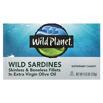 Wild Planet, 去皮去骨野生沙丁魚,載於高級初榨橄欖油中,4.25 盎司(120 克)