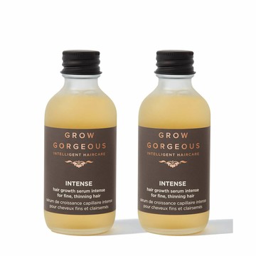 Do you love our best-selling serums? Wake up your hair with the Grow Gorgeous Hair Growth Serum Intense duo. Caffeine-enriched formulas leave hair fuller, thicker and healthy looking. Powered by a unique complex of active ingredients, this ultra-concentrated serum works to increase thickness of each strand by up to 13%*. *Based on an independent user trial and instrumental testing. INTELLIGENT HAIRCARE INGREDIENTS Organic Pea Sprout Extract stimulates roots to restore vitality for thicker, denser looking hair Chinese Scullcap, Soy, and Wheat Sprouts boost roots and improve condition for fuller, voluminous and healthier looking hair Biomimetic Peptide and Red Clover Extract reinvigorate roots for a full-bodied voluminous appearance Larch Tree and Green Tea re-energise the scalp for denser and healthy looking hair Additional Caffeine wakes up roots with a stimulating boost Hair Type: Fine, thinning hair. Purely Positive Promise: Grow Gorgeous are proudly vegan friendly, gluten free and formulated without Parabens, Sulphates, Silicones, Phthalates or Mineral Oil. Volume: 2 x 60ml