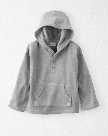 Meet our newest layer for venturing out in our little planet. Made in a textured waffle fabric of soft organic cotton and recycled poly, this style is complete with a hood, front pocket and henley placket with faux wood buttons. Meant to layer over or under through winter and alone from spring on, you'll be turning to this sustainable style all year round.Crafted in the purest organic fabrics and sustainable materials, Little Planet is a return to simplicity. Thoughtful essentials and timeless pieces to gift or to hold on to.