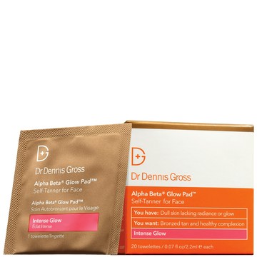 Create a radiant complexion without the need for sun with the Dr Dennis Gross Skincare Skincare Alpha Beta Glow Pad in Intense Glow. The pack of 20 facial tanning pads provides visible anti-ageing benefits whilst infusing the face with natural-looking, sun-kissed colour.Infused with Alpha and Beta Hydroxy Acids, the pads provide a gentle exfoliating action to sweep away dead skin cells, reduce the appearance of pores and ensure a smooth, even application of self tan. Encapsulated DHA provides time-released colour for a healthy-looking, youthful and glowing complexion.Free from parabens and phthalates. Vegan and cruelty-free.