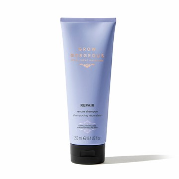Cleanse and revitalise your hair and scalp with the Grow Gorgeous Repair Rescue Shampoo. This restorative formula helps to repair damaged hair, while forming a protective barrier to defend against further damage. Ideal for dry, fragile hair that has been over-processed or regularly heat styled, the shampoo gently washes away impurities, excess oils and product build up. The invigorating shampoo is infused with Caffeine to stimulate the roots for healthy hair growth. Allantoin soothes and moisturises to condition the hair and scalp while Bio Functional Peptides and Amino Acids from the Carob Tree target thermal and chemical damage to help strengthen weak and brittle strands. Cupuassu Butter locks in moisture, while Baobab Seed Extract helps to strengthen fragile or brittle hair, restoring elasticity. Ideal for colour treated, chemically styled or heat damaged hair. Vegan. Free from gluten, parabens, sulphates, silicones, phthalates or mineral oil.