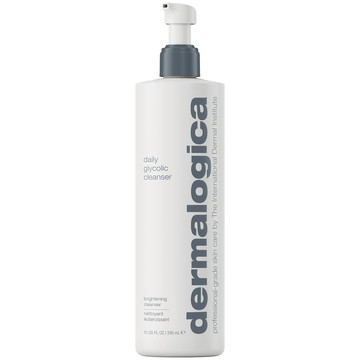 Dermalogica's Daily Glycolic brightening alpha hydroxy acid (AHA) cleanser undoes dullness with every wash. This gentle, jelly formula cleanses away brightness blockers that build up on skin daily and conditions skin to keep it looking luminous. Glycolic Acid: effectively exfoliates the skin. It blasts dullness and uneven skin tone by dissolving dulling dead skin cells for brighter-looking skin. Calendula Extract: Derived from the marigold flower, this botanical extract helps visibly calm and soothe skin while delivering antioxidant benefits. Jojoba Seed Oil: A lightweight, skin-identical oil that conditions and softens skin, helping to preserve the skin's moisture barrier with each cleanse. Allantoin: This soothing ingredient conditions and protects, while providing the skin with essential nourishment and antioxidants. Formulated Without: Parabens, Sulfates, Phthalates, Synthetic Fragrance