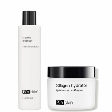 Set Includes: Creamy Cleanser This gentle, hydrating cleanser effectively removes dirt and makeup without stripping the skin of its essential moisture. This formula contains a nourishing blend of Rose Hip Seed Oil, Aloe and amino acids to help create radiant and younger-looking skin. This cleanser is recommended for dry or sensitive skin. Collagen Hydrator This rich emollient moisturizer contains a blend of humectants and Shea Butter for maximum hydration in patients with dry and mature skin. This moisturizer alleviates skin dryness and provides excellent antioxidant benefits.