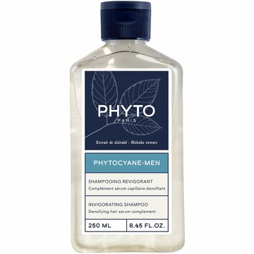 PHYTOCYANE MEN SHAMPOO. Anti hair thinning shampoo. Ideal complement to prepare the scalp before an anti hair thinning treatment.It gently cleanses and restores vitality and strength to the hair. The hair is of better quality, stronger and toned from the roots Key Ingredients: At the heart of the formula, a shiitake extract known for its toning and invigorating properties helps to restore hair strength. Pro-vitamins B6 and B5 bring strength and beauty to the hair fiber. An extraction of organic rosemary helps protect the scalp. Silicone and dye free.