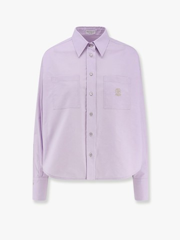 Cotton shirt with frontal logo embroidery - BRUNELLO CUCINELLI - gender_Woman