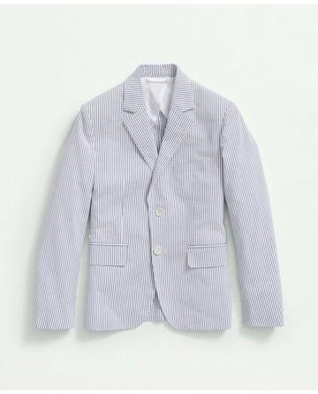 Brooks Brothers Boys Stretch Cotton Seersucker Jacket | Blue/Ivory | Size 12