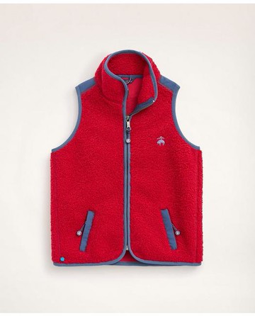 Brooks Brothers Boys Teddy Fleece Zip Vest | Red | Size Large
