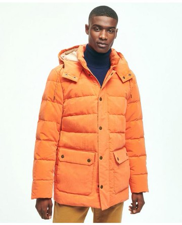 Brooks Brothers Men's Down Hood Parka Jacket | Bright Orange | Size XS