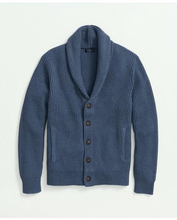 Brooks Brothers Men's Ribbed Cotton Shawl Collar Cardigan | Dark Blue Heather | Size XL