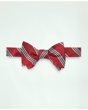 The classic Rep tie dates to the early 20th century when Britain donned their regimental ties with left-to-right stripes to represent heart to sword. They quickly caught on with the boarding school and social club set. And in 1902 we Americanized the style by switching the direction of the stripes in a nod to every-man democracy. Today the #BB1 pattern made from silk expertly woven in Italy, is an enduring classic having graced the collars of our biggest pop-art stars and presidents for over a century. Self-tie with an adjustable length that accommodates neck sizes from 13 ¾" to 18". 100% silkDry cleanMade in Italy | Brooks Brothers Men's Mini Stripe Bow Tie | Red/White
