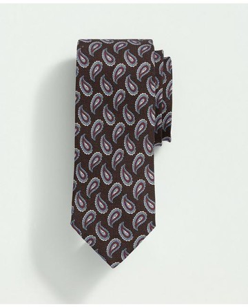 Brooks Brothers Men's Linen Jacquard Paisley Pattern Tie | Brown/Blue | Size Regular