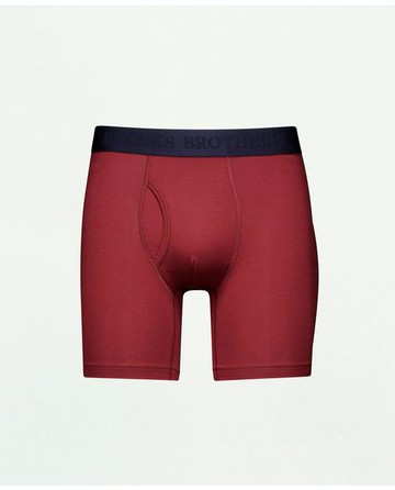 Made from performance stretch modal, featuring moisture wicking, thermal-regulation and anti-odor protection to keep you feeling cool and dry, our boxer briefs ensure comfort all day long. We optimized them with a darted pouch, one-piece back, flat lock seams and soft tag-less logo elastic waistband.6" inseam91% Modal, 9% SpandexMachine wash according to care instructions for best resultsImported | Brooks Brothers Men's Modal Boxer Briefs | Burgundy | Size XL