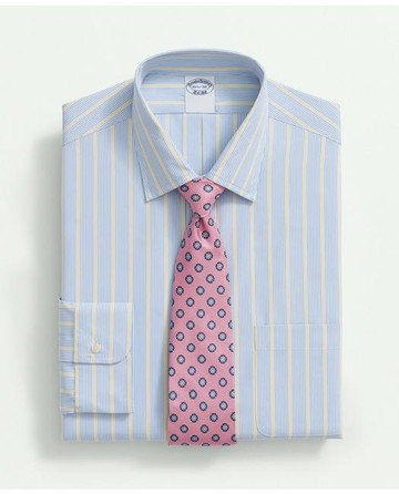 The ideal dress shirt to elevate your everyday wardrobe: meticulously crafted 2-ply 120s Supima® cotton poplin for a refined look that offers an incredibly soft handfeel with the durability you know and love. Signature details like our 6-Pleat Shirring® add that just-right finishing touch. Available in Fits:REGULAR is our standard, best-selling fit, designed for a wide range of body types. TRADITIONAL is our fullest, relaxed silhouette maximizing comfort, ease and classic style. SLIM is our most tailored, streamlined fit, cut closer to the body with a higher armhole. Ainsley CollarBarrel Cuff100% CottonMachine Wash according to care instructions for best resultsImportedWe use American-grown Supima® cotton for its extra-long staple fibers that provide superior strength, softness, color retention, and longevity to our styles. | Brooks Brothers Men's Supima Cotton Poplin Ainsley Collar, Multi-Stripe Dress Shirt | Blue | Size 16 34