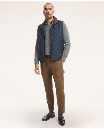 Introducing the Paddock Vest, our water-repellent update to the classic equestrian style. Thermore® EVOdown fill, made from recycled materials, keeps you warm without added weight, making it an ideal piece to wear on its own or style under a blazer or coat. Zip front; zipper pockets; contrast rib-knit interior trim.100% PolyesterMachine wash according to care instructions for best results. Imported | Brooks Brothers Men's Paddock Diamond Quilted Vest | Navy | Size XL