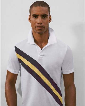 Brooks Brothers Men's Cotton Pique Archive Stripe Polo Shirt | White | Size Large