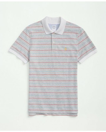There's no polo like a Brooks Brothers polo. Designed for lasting comfort and durability, ours are cast from pure American-grown Supima®, the world's finest cotton, with spandex for superior comfort and softness. Faux mother-of-pearl buttons finish this shirt to perfection. Available in Fits: ORIGINAL is our standard, best-selling fit, designed for a wide range of body types. SLIM is our streamlined fit, cut closer to the body.96% Cotton, 4% SpandexMachine Wash according to care instructions for best resultsImportedWe use American-grown Supima® cotton for its extra-long staple fibers that provide superior strength, softness, color retention, and longevity to our styles. | Brooks Brothers Men's Supima Cotton Multi-Stripe Polo Shirt | Grey | Size XL