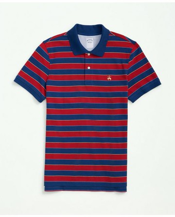 There's no polo like a Brooks Brothers polo. Designed for lasting comfort and durability, ours are cast from pure American-grown Supima®, the world's finest cotton, with spandex for superior comfort and softness. Faux mother-of-pearl buttons finish this shirt to perfection. Available in Fits: ORIGINAL is our standard, best-selling fit, designed for a wide range of body types. SLIM is our streamlined fit, cut closer to the body.96% Cotton, 4% SpandexMachine Wash according to care instructions for best resultsImportedWe use American-grown Supima® cotton for its extra-long staple fibers that provide superior strength, softness, color retention, and longevity to our styles. | Brooks Brothers Men's Supima Cotton Multi-Stripe Polo Shirt | Red | Size XL