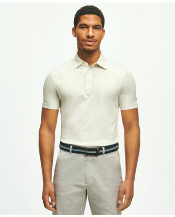 The Brooks Brothers Performance Series. Brooks Brothers was an early pioneer of active style, starting with our iconic Oxford Cloth Button-Down worn by polo players. This collection of active sportswear redefines style and movement. Versatile from course to commute, with a range of performance features. Performance properties: anti-microbial. Heat transfer logo at left sleeve.100% CottonMachine Wash according to care instructions for best resultsImportedWe use American-grown Supima® cotton for its extra-long staple fibers that provide superior strength, softness, color retention, and longevity to our styles. | Brooks Brothers Men's Performance Series Supima Cotton Jersey Polo Shirt | Cream Heather | Size XL