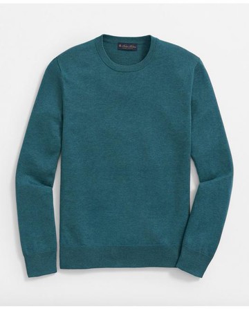 We've improved our Supima® cotton with finer yarn count and gauge for year-round wear. Not only does it look and feel better, but it wears better over time. These updates, along with a tighter tension and finer-gauge construction, have perfected our classic crewneck for seasonless style. Ribbed neck, cuffs and hem. 100% CottonMachine wash according to care instructions for best results. Imported We use American-grown Supima® cotton for its extra-long staple fibers that provide superior strength, softness, color retention, and longevity to our styles. | Brooks Brothers Men's Supima Cotton Crewneck Sweater | Teal Heather | Size XL