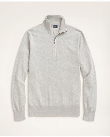 We've improved our Supima® cotton with finer yarn count and gauge for year-round wear. Not only does it look and feel better, but it wears better over time. These updates, along with a tighter tension and finer-gauge construction, have perfected our classic half-zip for seasonless style. Ribbed neck, cuffs and hem.100% CottonMachine wash according to care instructions for best results. Imported We use American-grown Supima® cotton for its extra-long staple fibers that provide superior strength, softness, color retention, and longevity to our styles. | Brooks Brothers Men's Supima Cotton Half-Zip Sweater | Grey Heather | Size XL