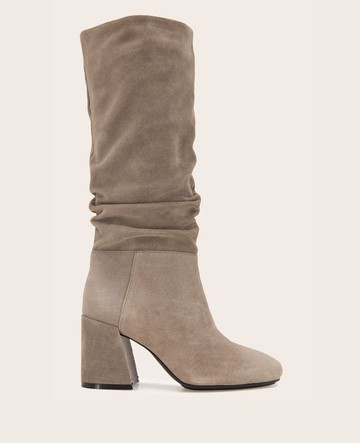 WHAT’S IN IT FOR YOU? Women's suede bootie Semi-rounded toe Zip closure for a secure fit Cushioned back ankle for added support Signature Gentle Souls comfort technology Breathable leather lining naturally wicks moisture and controls temperature Cloudlike PORON cushioning and patented arch support from natural materials Traction rubber layered sole 13 inch boot shaft 3 inch heel 100% leather Wipe clean Imported Style runs large, size down 1/2 size | Gentle Souls | Iman Suede Zip Bootie in Mineral, Size: 7 by Kenneth Cole