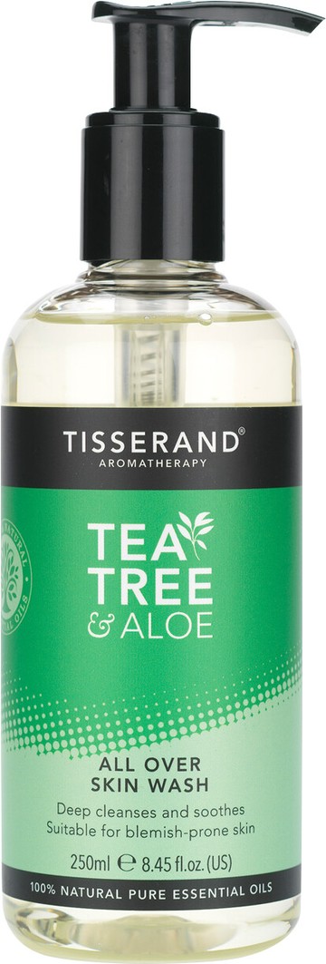 Cleanse your face and body with Tisserand Aromatherapy Tea Tree & Aloe All Over Skin Wash, with antiseptic tea tree oil and soothing aloe extracts. This daily skin wash has been formulated with a blend of pure essential oils to deeply cleanse and rebalance skin, without drying it out. It is particularly beneficial to oily, blemish-prone skin types. The key ingredients are tea-tree oil, a natural antiseptic, revitalizing grapefruit oil, pore-refining lemon oil and skin-balancing ho wood oil to clarify and comfort sensitive and blemished skin types. Apply product to palms and work into a lather on wet skin. Rinse with warm water. Avoid the eye area and areas of damaged or irritated skin. Free from sodium laureth sulfate, parabens and synthetic fragrance.
