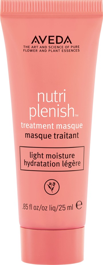 'Treat dry thin hair to a wave of moisture with the Aveda Nutriplenish Treatment Masque Light Moisture.' - Hannah, Escentual Beauty Team. Why You'll Love The Aveda Nutriplenish Treatment Masque Light Moisture: Nutrient-infused hair mask for fine to medium dry hair. Fast-acting mask that hydrates your hair in under 5 minutes. Vegan formula enriched with nourishing superfoods. Improves hair health and shine. 97% of testers agreed hair felt more manageable after use. Features a lightweight gel-cream texture with a natural ginger, cocoa and floral scent. What You Need To Know: Designed to quickly rehydrate fine to medium hair types suffering with dryness, the Aveda Nutriplenish Light Moisture mask restores hydration without weighing down your hair. The mask instantly adds a layer of shine, thanks to omega-5 rich pomegranate seed oil and fast-absorbing coconut oil. Mango butter is extra nutrient-rich, so it helps to add 4x the level of hydration to dry hair, leaving behind a healthy shine and smooth tresses. Why It's Escentual: Any hair texture that is thin or fine will enjoy the lightweight hydration you get from the Aveda Nutriplenish Light Moisture Masque. What's more, its ginger-floral scent creates a spa-like feel as your tresses bathe in a hydrating blend of superfoods, so they're soft and shiny after just one use and healthier over time. The vegan hair mask has a gel-cream texture that detangles your lengths as you use it. We love that the mask only needs 5 minutes to get to work on revitalising dry hair - we love to think of it as a pampering treat to enjoy throughout the week. The Best Way To Use It: Wash your hair with shampoo and smooth the mask through your hair, from root to tip, focusing on the driest parts of your hair. The mask can replace your conditioner and should be left for 2-5 minutes before being rinsed out. The Sustainable Side: The bottle is made from 59% post-consumer plastic and 41% plant-derived bioplastic. Every Aveda product has a negative carbon footprint, thanks to solar and wind-powered manufacturing, the sustainable sourcing of ingredients and Aveda's initiative to give back to the planet. Values: Vegan. Paraben-free, silicone-free, cruelty-free.
