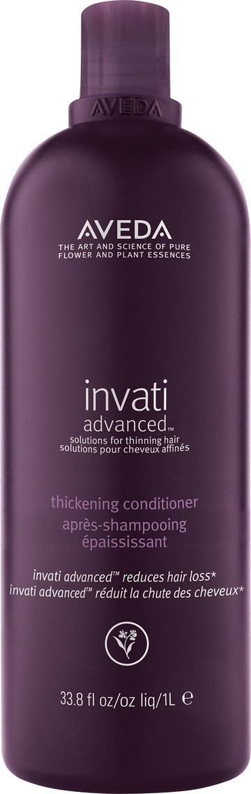 'People of any age or gender can experience hair loss, but thankfully, the Aveda Invati Advanced Thickening Conditioner is here to help thicken your hair for a full, bouncy finish - if you have a fine hair texture, you'll also love this conditioner.' - Hannah, Escentual Beauty Team. Why You'll Love The Aveda Invati Advanced Conditioner: Thickening conditioner for those with thin hair experiencing hair loss. Features a vegan formula that encourages hair growth and strengthens existing hair. Packed with a lightweight blend of botanicals to deeply condition. Offers a 98% natural formula that is suitable for colour-treated hair. What You Need To Know: The Aveda Invati Advanced Conditioner is part of the Invati Advanced routine, designed to reduce hair loss by 53%. The nourishing conditioner uses natural amino acids to strengthen each individual hair strand, creating an overall full and healthy finish. Organic amla thickens the hair whilst plant oils leave behind a weightless veil of hydration. 'Invati' translates to 'invigorate' in Sanskrit, reflecting the conditioner's ability to stimulate hair growth; every step in the Invati routine should include a scalp massage, encouraging blood flow and growth. Why It's Escentual: Hair loss is a condition that can affect everyone, and the priority of the Aveda Invati Advanced Conditioner is to reduce hair loss and thicken existing strands no matter the cause of hair loss. The formula is colour safe, so anyone can experience its hair thickening benefits - and trust us, once you try the Invati Advanced range, you'll be hooked! The conditioner is also fantastic for those with thinner hair types, who are looking to add body and thickness - it offers an immediate thickening effect, as well as long-term benefits. The gentle lavender scent makes using the Invati Conditioner a treat for everyone, so, even though its thickening technology is getting to work restoring your hair, you can still indulge in a salon-style pamper. The Best Way To Use It: After cleansing your hair, apply the conditioner all over your hair, working a small amount into your scalp and massage. Rinse thoroughly and follow with the Invati Scalp Revitaliser for best results. The Sustainable Side: The bottle is made using 100% post-consumer recycled materials, so it can also be recycled when empty. This conditioner has a negative carbon footprint, thanks to Aveda's solar and wind-powered manufacturing, the sustainable sourcing of ingredients and their initiatives to give back to the planet. Values: Vegan. Sulphate-free, cruelty-free.