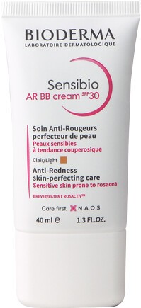 Get tinted coverage and high-tech, dermatological care with the Bioderma Sensibio AR BB Cream SPF30, a multi-action skincare and make-up hybrid for a perfected complexion. Providing a ground-breaking seven skincare benefits in one application, the Bioderma BB cream provides excellent coverage and intensive anti-redness care while enhancing radiance, providing lasting moisture, smoothing the skin's texture, soothing irritation, and protecting against UV damage with organic chemical mineral filters with an SPF of 30. The lightweight and comfortable cream is created with the exclusive ROSACTIV® patent, which prevents the dilation of small blood vessels and calms redness at its source. Further anti-redness care is provided by ginkgo biloba, green tea and soy, which inhibit the factors that cause persistent redness. A cocktail active ingredients reduce inflammation, anti-irritant allantoin and canola immediately soothe, and glycerin promotes hydration. The Sensibio AR BB Cream provides light coverage that blends easily, cleverly disguising all signs of redness without masking the skin entirely. Its advanced technology introduces a texture innovation, which instantly colour matches upon contact with the skin. Apply every morning to clean skin. Massage and smooth until completely blended. Non-comedogenic, lightly scented.