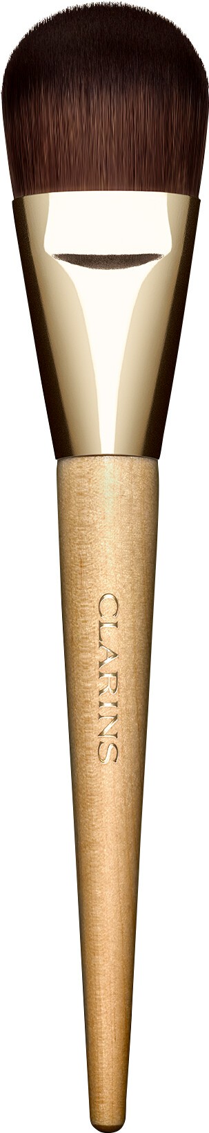 The incomparably soft, cruelty-free Clarins Foundation Brush will deliver perfect coverage in just a few swipes. Rapidly apply, blend and layer your foundation with this essential brush. It performs beautifully with liquid, cream or powder foundation, as well as concealer, for a smooth and luminous complexion that doesn't feel overloaded. The flat and rounded cat tongue mimics the shape of your fingers in order to contour and blend around the angles of the face with ease, whilst the dense, smooth bristle design will help you to achieve coverage exactly where you need it. Why We Love It The perfect staple for a gorgeous base, the Clarins Foundation Brush will ensure your foundation feels like a second skin, instantly accentuating your natural beauty and giving you the option to build coverage if you so desire. How To Use It Dispense a small amount of foundation or concealer onto the back of your hand or edge of the brush, and then apply to the face using gentle swipes, starting in the centre of your face and working outwardly until you have reached your desired level of coverage. Works Well With The Clarins Everlasting Foundation works perfectly with this brush. It will perfect your base and give you up to 18 hours of matte, luminous skin. The Clarins Foundation Brush will ensure that this foundation is distributed onto your face with ease and precision. Values Cruelty-free.