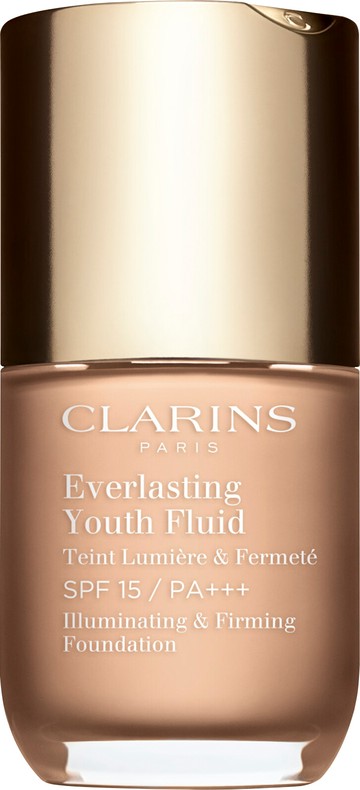 The Clarins Everlasting Youth Fluid Illuminating and Firming Foundation SPF15 is a long-wearing medium coverage formula that won't set into fine lines and wrinkles. The Everlasting Youth Fluid Foundation is Clarins' first liquid foundation developed in the same way as their anti-ageing skincare. Three years of research and 186 trials have gone into making the pro-ageing foundation a debut for Clarins. Every hydrating drop contains the perfect combination of coverage and nourishment, providing the complexion with a firmer, plumped, smooth and radiant appearance. Its creamy, but fluid texture helps to conceal age spots and imperfections, as well as to smooth over fine lines and wrinkles. Available in a wide range of shades to suit all skin tones, this firming foundation is packed with good-for-skin plant extracts. Chicory leaf can boost the synthesis of collagen in the skin and will visibly firm and illuminate the complexion while organic oat sugars have a lifting effect. Red jania encourages cell renewal, which in turn helps to smooth the skin and make it look more radiant. Also, Clarins Everlasting Youth Fluid contains an anti-pollution and skin tone optimising complex made from soft-focus powders and coated pearls that have a luminous, rosy reflection - it's the perfect antidote to dull, ageing skin. Why We Love It Fans of the Clarins Extra-Firming Foundation fear not, this improved formulation boasts more skincare benefits and better coverage. It will let the skin breathe rather than mask it and works well for skin of all ages, as well as mature. We all adore the satin finish it provides. It takes into consideration the fact that as we age, so does our skin. The sebum levels slow down and result in the skin feeling and looking dry, which in turn can highlight skin imperfections. A hydrating foundation with light-reflective particles will nourish and add radiance to the face, and that's what the Everlasting Foundation does. In its weighted glass bottle (made from 25% recycled glass) this foundation feels luxurious while at the same time being considerate of the environment, which is always a good thing! How To Use It Less is more when it comes to this foundation; you only need a few drops because it's highly pigmented. Best applied using your fingers, warm a little of the foundation slightly in your hands before smoothing onto the face starting into the centre and working outwards towards the neck, hairline and ears. Or, if you prefer, use your favourite foundation brush and apply in the same way. Works Well With If you need a little extra helping hand in your under-eye area or blemishes the Everlasting foundation works perfectly paired alongside one of the Clarins concealers.