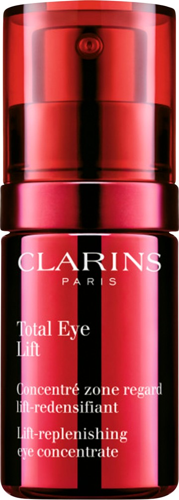 Revitalise tired and ageing eyes with the Clarins Total Eye Lift, an effective anti-ageing eye cream that lifts, smooths and brightens the eyes and is suitable for all skin types. Gentle enough for even sensitive eyes, the multi-tasking eye care solution is powered by 94% natural origin ingredients. The Total Eye Lift formula helps to rejuvenate the eye area, reduce dark circles and de-puff the eye contour for a youthful, refreshed and well-rested look. The delicate skin around the eyes is re-densified as the soothing cream smooths away wrinkles, fine lines and crow's feet for a visibly lifted finish. With a powerhouse botanical blend, the silky gel-cream glides on with ease to offer impressive anti-ageing and anti-fatigue results. Rich in fatty acids, the eye cream uses cassie wax - one of Clarins' most efficient anti-ageing ingredients - which is renowned for its toning properties. This sits alongside organic harungana, a natural skin-tightening ingredient that helps to create an immediate smoothing effect, while promoting long-term lift and targeted nourishment. The highly replenishing formula helps to visibly revitalise the eye area, thanks to added natural ingredients such as firming and radiance-boosting albizia and de-puffing guarana. Finally, horse chestnut helps to brighten shadows areas to mask signs of fatigue. Why We Love It Clarins' has redefined their iconic cult-classic eye cream to make it even more powerful. As big fans of the original, we couldn't wait to try the updated formulation - and it doesn't disappoint! It's ideal that the eye cream helps to target multiple signs of ageing in one and is suitable for all skin types. Whether you suffer from dark circles or you want to smooth fine lines and wrinkles (or tackle both at the same time), the Total Eye Lift cream will transform tired, fatigued and ageing eyes. Plus, we love Clarins' commitment to being more sustainable. The powerful eye concentrate is held in a scarlet-hued ombre glass bottle - which is both recyclable and airless - while the eye cream itself is driven by nature. How To Use It To apply, dab gently onto the eye contour and eyelids, and smooth between the eyebrows and on the temples. Works Well With Make sure to take a look at the rest of Clarins' skincare collection to find additional anti-ageing formulas for your individual skin type and concern. Values Suitable for contact lens wearers.