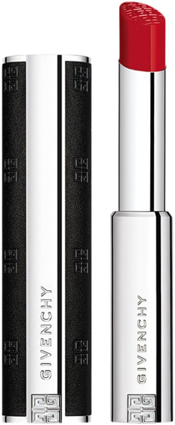 Why You'll Love It: Must-have Givenchy accessory (lipstick) inspired by the fashion house. High-impact colour with a satin finish that feels comfortable and looks polished. The shades are designed to flatter your skin tone. GIVENCHY Say Discover GIVENCHY Le Rouge Interdit Satin lipstick, the new couture lipstick with a luminous satin finish. Enjoy a burst of long-lasting colour that stays radiant for six hours** and keeps your lips hydrated for 24 hours*. The 10 vibrant shades deliver high coverage to suit every skin tone and make a beauty statement in just one stroke. The satin texture wraps and shapes the lips, and the enveloping formula, composed of 90% natural origin ingredients***, plumps and smooths the lips. Hyaluronic acid and shea butter infuse the lips, while a combination of white pearls helps to provide long-lasting radiance. Le Rouge Interdit Satin lipstick from GIVENCHY features an elegant design with a new sleeker and pocket-sized silhouette. Made with genuine leather, the case is adorned with the iconic 4G monogram and refined silver-toned edges. A true GIVENCHY couture accessory, the lipstick bullet is also delicately stamped with the 4G logo. Thom Walker, Givenchy's Makeup Creative Director, created an intensely radiant 10-shade colour palette for this hydrating lipstick. Inspired by the Maison's iconic Couture pieces, these daring shades were designed to suit every skin tone. RESULTS +53% smoother lips after one application +44% plumper lips after one application +53% more radiant lips after 6 hours 6-hour lasting color 6-hour radiance 6-hour no feathering 24-hour hydration * 6-hour smoothing & plumping effect ** 6-hour comfort***** Why It's Escentual Imagine slipping this lipstick into your clutch - it's not just a beauty product, it's a statement piece. Genuine leather and the iconic Givenchy 4G monogram transform it into a couture accessory. Expect bold, long-lasting colour, plus a hydration boost to keep your lips looking their best. And with a shade for every skin tone, inspired by the high-fashion world, you'll find your perfect pout in no time. Once you've experienced this lipstick, you'll never look back. Claims *Instrumental test on 32 volunteers ** Clinical test on 30 volunteers ***Value calculated on the basis of ISO 16128. Percentage of water included. Remaining 10% contributes to the performance, sensoriality, and stability of the formula. ****Value calculated on the basis of ISO 16128. Percentage of water included. Remaining 4% contributes to the performance, sensoriality, and stability of the formula. ***** Self-assessment by 30 volunteers