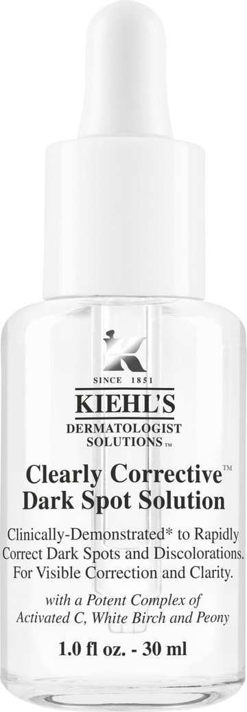 Is your hyperpigmented skin in need of a helping hand? Look no further as the Kiehl's Clearly Corrective Dark Spot Solution will promote youthful clarity and a more even complexion. Created to both help to reduce the appearance of existing dark spots and assist with the prevention of the appearance of further hyperpigmentation in the future, this transparent concentrate is an all-in-one solution to your pigmentation concerns. Its potent blend offers the highest concentration of intensely brightening activated C (a derivative of vitamin C), white birch and peony in the Clearly Corrective range. Kind to all skin styles but effective on dark spots, it's a daily essential for those with uneven skin. Why We Love It This serum does it all; helps to reduce the appearance of dark spots, discoloration and hyper- pigmentation whilst evening and illuminating your skin's complexion. It's a sure fire way to complexion success. How To Use It Dispense a small amount into your hand, and massage all over your face and neck both morning and evening, being mindful to avoid the eye area. During the day, follow with an appropriate SPF. Top Tip: If you don't need to apply to the entire face, apply directly to areas of hyperpigmentation. Works Well With Follow up your treatment with a daily SPF from for the face from the Kiehl's suncare collection. Values Silicone-free, paraben-free, fragrance-free.