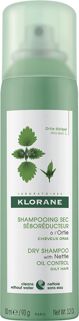 'The Klorane Nettle Dry Shampoo for Oily Hair allows you to fake that 'just-washed' hairstyle; it's a refreshing dry shampoo spray that uses nettle extract to clean hair and reduce excess oil.' - Darcey, Escentual Beauty Team. Why You'll Love The Klorane Nettle Dry Shampoo: Dry shampoo for oily hair. Cleanses hair whilst reducing excess oil for 48 hours. Increases time needed between washes. On-the-go spray design. Vegan and biodegradable formula. What You Need To Know: The Klorane Nettle Dry Shampoo contains a unique blend of plant-derived extracts, including nettle grown in Eastern Europe, and is ideal for oily hair types looking to refresh their hair between washes quickly. The natural active ingredients regulate the sebaceous glands for 48 hours to reduce oil production, whilst the ultra-absorbent powders soak up oil, allowing you to wash your hair less often. Hair is left clean and fresh while volume is restored within just two minutes. Plus, the refreshing nettle aroma will perk up the senses as well as your locks! Why It's Escentual: We all know what it's like when you need to wash your hair but you'd rather spend the extra time in bed; well that's where the Klorane Nettle Dry Shampoo comes in! It perfectly absorbs greasiness and refreshes hair for those mornings you're in a hurry. It's specifically designed for oily hair types. However, anyone can enjoy the energising, fresh nettle scent; it's a must-have after a workout. We love that Klorane uses high-quality ingredients which are organically sourced and respect the ecosystem; the vegan and biodegradable dry shampoo allows you to achieve all-day freshness whilst being kind to nature. The easy-to-use spray bottle is perfect for someone in a rush or on the go looking for natural, clean-looking hair without wasting water. The Best Way To Use It: Shake before use, separate the hair into sections and spray the dry shampoo from 15cm away. Leave the dry shampoo for two minutes before brushing thoroughly to remove any powder. Reapply when needed. The Sustainable Side: Biodegradable formula held in a recyclable can. Values: Dermatologically-tested, vegan. Silicone-free, paraben-free, MIT-free.