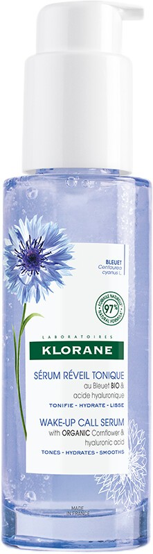 'The water-like formula of the Klorane Organic Cornflower Wake-Up Call Serum instantly plumps and tones your face with calming cornflower and hydrating hyaluronic acid.' - Melisa, Escentual Beauty Team. Why You'll Love The Klorane Cornflower Serum: Toning and plumping serum for dehydrated and lacklustre skin. Improves hydration levels by 60% and antioxidant protection by 54%. Soothes and depuffs with organic cornflower. Hydrates, plumps and smooths with hyaluronic acid. Protects the skin with organic edelweiss. What You Need To Know: The Wake-Up Call Serum revitalises and energises the skin with its blend of nourishing ingredients. Among them is organic cornflower, which has a calming and decongesting effect. Organic edelweiss is also included, a flower known for its natural antioxidant properties that can help protect the skin from environmental stressors. Hyaluronic acid is added to deeply moisturise, plump, and smooth the skin, while dextran sulfate helps reduce puffiness and promote firmness. Clinical studies have shown that after just one hour of use, the serum can improve your skin's hydration levels by 60% and its antioxidant protection by 54%. After using this serum, your skin will feel refreshed, toned and moisturised, and better prepared for the rest of your skincare routine. Why It's Escentual: The clear gel formula becomes watery when it touches the skin. It quickly absorbs, leaving the complexion instantly refreshed. The skin feels well-hydrated, silky smooth and soothed. Crafted with a refined formula that harnesses the power of potent plant-derived ingredients, this serum works wonders in deeply hydrating and reducing puffiness in the skin. The result is a healthy, revitalised complexion that looks and feels its best. The Best Way To Use It: In the morning, smooth a thin layer of the product to your face, neck, and eye area after cleansing. As a tip, apply the serum on slightly damp skin. This will enhance the effectiveness of the hyaluronic acid. The Sustainable Side: Klorane ensures their supply chain is short and eco-friendly, while the glass bottle used for this product is fully recyclable. Values: COSMOS certified. Vegan. 97% naturally-derived ingredients. High tolerance formulas.