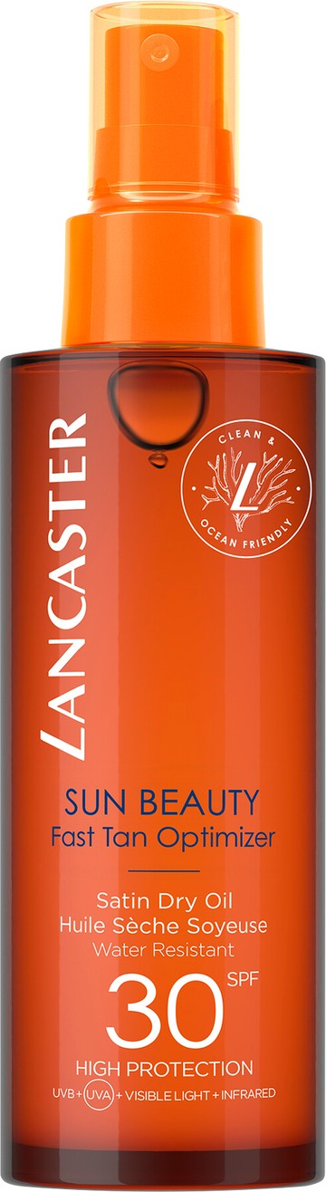 'A hidden gem in the world of sun care, the Lancaster Sun Beauty Satin Dry Oil SPF30 will win over anyone who doesn't like greasy, sticky sunscreen; its dry oil texture is groundbreaking.' - Kate, Escentual Beauty Team. Why You'll Love The Lancaster Satin Dry Oil SPF30: Broad-spectrum sunscreen for the body with SPF30 defence. Guards against UVA rays, UVB rays, visible light, infrared light and blue light. Promotes an even tan while repairing sun damage. Features a vegan, clean and ocean-friendly formula. Has a dry oil texture that sinks in quickly for non-greasy, lightly shimmered effect. Water and sweat-resistant. What You Need To Know: Updated in 2022, the Lancaster Satin Dry Oil SPF30 is now better than ever - and it was already pretty impressive to start with. The updated formulation guards against 100% of the sun's spectrum using Lancaster's Full Light Technology; that means you're covered against UVA rays, UVB rays, infrared light, visible light, while it now offers further protection against blue light. It also helps to repair sun damage and strengthen your skin against photoaging using a natural-origin repair system, while encouraging a fast, even and deep golden tan in twice the less time of sun exposure. Oh, and that's not to mention that it features a clean, vegan and ocean-friendly formula whilst still maintaining that dry oil finish that you know and love. Why It's Escentual: We think that the Lancaster Sun Beauty Dry Oil is perfect for anyone who both loves luxurious sunscreen and anyone who has been put off by heavy, greasy and sticky SPFs in the past. It covers all of the essentials of sun care (it's broad-spectrum, coral reef-friendly and water-resistant) while it goes the extra mile to ensure that you get more from your sun care, including a healthy-looking golden tan. The SPF30 Satin Dry Oil really puts the 'beauty' in the Sun Beauty collection as it builds a flawlessly sun-kissed look in half the time, so you can build up your tan without putting your skin's health at risk. But that's not all: as the ultra-sensorial golden body oil melts into your skin, it immediately provides a comfortable sensation as it dries to leave an invisible finish with a subtle glow that beautifies your skin while hydrating it. The oil leaves a dry touch finish and feels so lightweight that you'd forget you had it on, if it weren't for the fact that it cocoons your skin in a delicate shimmer that catches the light beautifully. The Best Way To Use It: Shake well before use and apply all over your body before sun exposure, taking care to spread the product generously and evenly over the skin using your hands. Reapply frequently, especially after swimming, excessive sweating and towelling. The Sustainable Side: Lancaster's SPF30 Dry Oil features a clean, vegan and ocean-friendly formulation with a biodegradable base that respects marine life. Furthermore, the outer cardboard box is made from responsibly sourced paper, while the spray bottle contains a minimum of 50% recycled materials to help reduce the brand's environmental impact. Values: Dermatologically-tested, vegan. Cruelty-free.