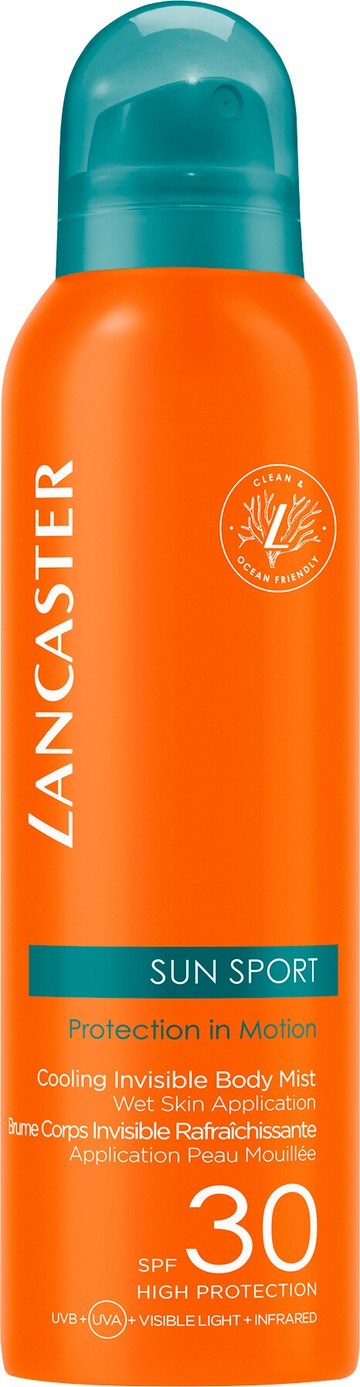 'If you get hot and flustered when you exercise, then you need the Lancaster Invisible Body Mist SPF30 in your life to keep you cool and protected.' - Kate, Escentual Beauty Team. Why You'll Love The Lancaster Sun Sport Mist SPF30: Broad-spectrum sunscreen for the body with SPF30 defence. Offers UVA ray, UVB ray, visible light, infrared light and blue light protection. Helps to repair sun damage whilst promoting an even tan. Showcases a vegan, clean and ocean-friendly formula. Features an ultra-lightweight mist format with a transparent finish. Water and sweat-resistant. What You Need To Know: If you've ever been tempted to skip SPF when you're exercising because it feels too greasy or heavy, or maybe you feel like you sweat it off straight away, then the Invisible Body Mist is here to revolutionise your approach to sport and sun care. It's been designed to offer broad-spectrum protection against 100% of the sun's spectrum - infrared light and blue light included - while meeting the needs of your skin as you move. To start with, it's water and sweat-resistant, but - just like you - it goes the extra mile by creating an instant-cooling effect to chill your skin when you're performing outdoors activities. While keeping your skin safely protected when you're exercising or exploring, the SPF mist also helps to repair skin damage, all while offering a clean, vegan and ocean-friendly formula. Why It's Escentual: Lancaster's Sun Sport SPF30 Mist is made for athletes and adventurers. Not only does it keep aspiring Olympians effectively protected against all aspects of the sun's spectrum using innovative Full Light Spectrum technology, but it makes your exercise routine a little bit more refreshing, thanks to its ability to chill your skin as you wear it - yes, we've put it to the test, and it works to cool you down as you move. The formula was revamped in 2022 to offer even more protection (the formula now has enhanced protection against blue light), while offering a vegan, clean and ocean-friendly formula. This is reflective of Lancaster's care for the environment as the formula is non-toxic to the ocean, meaning that water sport fans can wear it with confidence; it can even be directly applied to wet skin too. The finishing touch has to be the texture; we love how quick and easy it is to apply. It creates an immediate and lasting feeling of freshness, while keeping your skin hydrated. The fast-drying mist has a non-greasy, non-sticky finish that allows your skin to breathe, even during the most intense sport activities. The Best Way To Use It: Shake well before use, until you hear the ball rattle. Spray generously all over the body before sun exposure, in an open space, and blend in. Reapply frequently, especially after swimming, excessive sweating and towelling. The Sustainable Side: Lancaster's Sun Sport SPF30 Mist features a clean, vegan and ocean-friendly formulation with a biodegradable base that respects marine life. Values: Vegan. Cruelty-free.