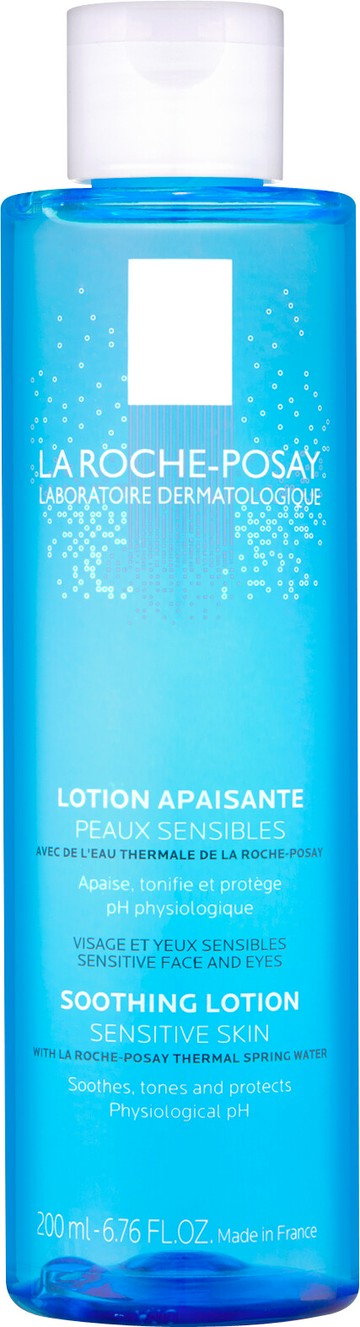 Gently tones all types of sensitive skin. Indications: Sensitive skin. Properties: Physiological soothing toner tones and soothes all types of sensitive skin. Physiological Formulation Charter: Cleansing agents selected for an optimal tolerance, high make-up removal power, hydrating and soothing active ingredients, with La Roche-Posay thermal spring water. Physiological pH, soap-free, alcohol-free, colorant-free, formulated without paraben. Results: Sensitive eyes are perfectly cleansed; their physiological balance is respected. Dosage: Apply without rubbing with a cotton wool pad. No rinsing.
