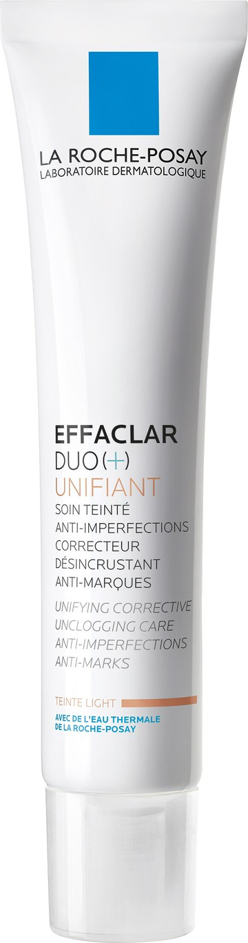 Unify and perfect your skin in a single step with La Roche-Posay Effaclar Duo[+] Unifiant, anti-imperfection skincare with a subtle tint. Light and non-sticky with a melt-in texture, this daily treatment works to treat and reduce blemishes, targeting every stage of the imperfection cycle. The award-winning formula is now enhanced with a mattifying 100% mineral pigment tint, which evens out the skin's tone and reduces the visibility of redness with its sheer coverage. At the heart of the formula is niacinamide, renowned for its anti-inflammatory and soothing care. LHA gently exfoliates skin and provides keratolytic action to speed up the renewal of skin cells, procerad prevents and treats post-inflammatory hyperpigmentaion, and linoleic acid regulates sebum and creates a feeling of freshness. Apply all over the face, no need to rub. Non-comedogenic.