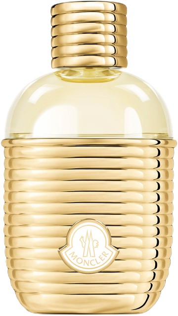 Moncler Sunrise Pour Femme, a luminous golden design that exudes elegance and femininity. The iconic quilted case wears a radiant gold metal color, beautifully reflecting light. The transparent upper part allows the light to pass through and shows the soft gold colored juice creating a stunning visual effect. The dazzling gold bottle is showcased in sleek black outer packaging for a luxurious premium signature. A Woody Floral fragrance, Moncler Sunrise Pour Femme opens with a vibrant and sparkling Juicy Pear notes combined with a fresh and petal-like heart composed of a beautiful Floral Bouquet. The drydown reveals an overdose of majestic Sandalwood for a sensual and long-lasting trail.