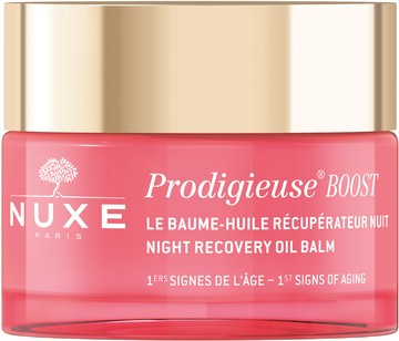 Recharge and rejuvenate your skin as you rest with the Nuxe Creme Prodigieuse Boost Night Recovery Oil Balm, an anti-ageing balm of 92% natural-origin for all skin types that allows you to wake up to a smooth, luminous and refreshed complexion. As you sleep, Nuxe's ultra-sensorial face balm helps the skin recover from the harmful effects of everyday life, including damage caused by stress, fatigue and pollution - making it the perfect overnight treatment for city dwellers. Making the most of the skin's natural overnight repair process, the fruity-floral scented balm relaxes the facial features, so you can wake up to fresh, re-energised skin. While respecting your skin's natural balance, the recovery oil balm cocoons the complexion in a comforting and softening blend of ingredients, including ultra-nourishing macadamia oil, without creating an oily feel. Nuxe's luxe, overnight formula also protects against damaging free radicals using a jasmine flower complex, while it also boosts the skin's 'collagen capital' to fight against early wrinkles using Nuxe's unique patented calendula flower. The anti-ageing balm also showcases cellular sugar, which encourages skin firmness and elasticity by boosting cell activity to trigger the synthesis of proteins in the skin. Finally, nopal flower extract boosts cell renewal to reveal a smoother-looking complexion. Inviting you to enjoy a moment of bliss and relaxation before you slumber, the Nuxe Night Recovery Oil Balm also releases a sensual aroma as intoxicating jasmine pairs with tangy, refreshing lychee and musk. Why We Love It For a lot of us, our night-time skincare routine must be at least two things; hard-working and sensorial. And thankfully, Nuxe ticks both boxes as the oil balm supports the skin's naturally repairing and rejuvenating process as you rest, by addressing early signs of ageing, while also featuring a comforting texture and a delightful scent that you'll want to breathe in every night before bed. How To Use It Apply to the face, neck and decollete in the evening. Works Well With Why not indulge in the sensorial textures and aromas of the Nuxe Creme Prodigieuse Boost range in your waking hours, too, by exploring the full collection for a daily cream or mask? Values Non-comedogenic. Paraben-free, mineral oil-free.