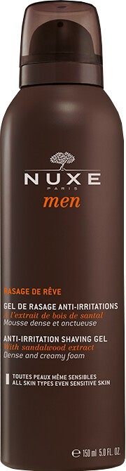 Achieve a precise, close shave with the Nuxe Men Anti-Irritating Shaving Gel, a foaming shaving gel for all skin types that soothes and comforts skin while you shave. Designed to help you achieve a tight, stubble-free shave without causing irritation, Nuxe's gel-to-foam shaving formula is suitable for even the most sensitive skin. With a rich and creamy texture that feels incredibly soft and comforting when applied, the Nuxe Anti-Irritating gel is infused with sandalwood extract for an effortlessly close shave. The shaving gel enhances precision shaving as it encourages the blade to glide over skin, while it also restores the hydrolipidic film using sandalwood and phellodendron.While releasing an ultra-masculine scent of spice and wood, the 80% natural origin shaving foam also helps swell each hair to enable the blade to pick them up and reduces the appearance of ingrown hair using a urea derivative. After use, skin feels supple, flexible and fresh-faced thanks to skin-soothing vegetal glycerin. Why We Love It Despite the name, Nuxe's Anti-Irritating Gel has an ultra-foaming texture that lathers with ease, so you can enjoy a soft, bubbly and creamy texture as you achieve a smooth, well-groomed look. As it's so foaming, a little goes a long way! And you can breathe in the comforting aroma of hot cardamom, musky-earthy patchouli and cedar while shaving, which adds a bit of luxury to the experience. How To Use It Shake the bottle well and apply a small amount of the gel to a moist face. Massage into a lather and shave as usual. After shaving, rinse well with water. Works Well With Why not explore the Nuxe Men range further to find more luxe, hardworking skincare and shower products? Values Paraben-free, alcohol-free, aluminium salt-free.