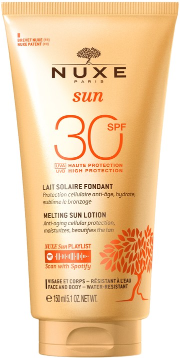 'The Nuxe Mon Melting Sun Lotion For Face and Body SPF30 makes applying SPF a dream thanks to its scent of juicy oranges, vanilla and florals.' - , Escentual Beauty Team. Why You'll Love Nuxe Mon Melting Sun Lotion For Face and Body SPF30: The clean suncream will reduce signs of premature photo-ageing. Your skin will be protected while your tan is enhanced over time. What You Need To Know: The Nuxe Mon Melting Sun Lotion For Face and Body SPF30 shields skin against UVA and UVB rays. It has a weightless melting cream texture that effortlessly absorbs into the skin, leaving a satin finish that gives the skin a subtle glow. Presented in the Nuxe sun range's iconic burnt orange design with a flexible tube for ease of use. Delivers cellular protection with rice and rosemary extract, while carob powder extract boosts your natural tan. Has a creamy floral scent with hints of citrus. Lightweight cream. Lasts for three months. Why It's Escentual: Forget what you know about SPF, the Nuxe Mon Melting Sun Lotion For Face and Body SPF30 is a cut above the rest; its luxuriously rich yet lightweight cream absorbs into the skin so quickly, leaving it scented with the summery aroma of sweet orange, tiare flower and vanilla. The Best Way To Use It: Apply 30 minutes before heading outside. Smooth over your face and body. Reapply every two hours. Sustainability and Values Non-comedogenic. Vegan. Water-resistant. Designed with 25% less plastic than Nuxe's previous tubes. Clean formula, non-toxic for the marine ecosystem.